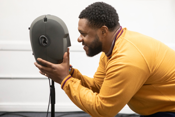A Ghost In Your Ear is the new play from Jamie Armitage, the writer/director of 2025 sell-out hit An Interrogation. Made in collaboration with Ben and Max Ringham (ANNA, National Theatre and Blindness, Donmar Warehouse).